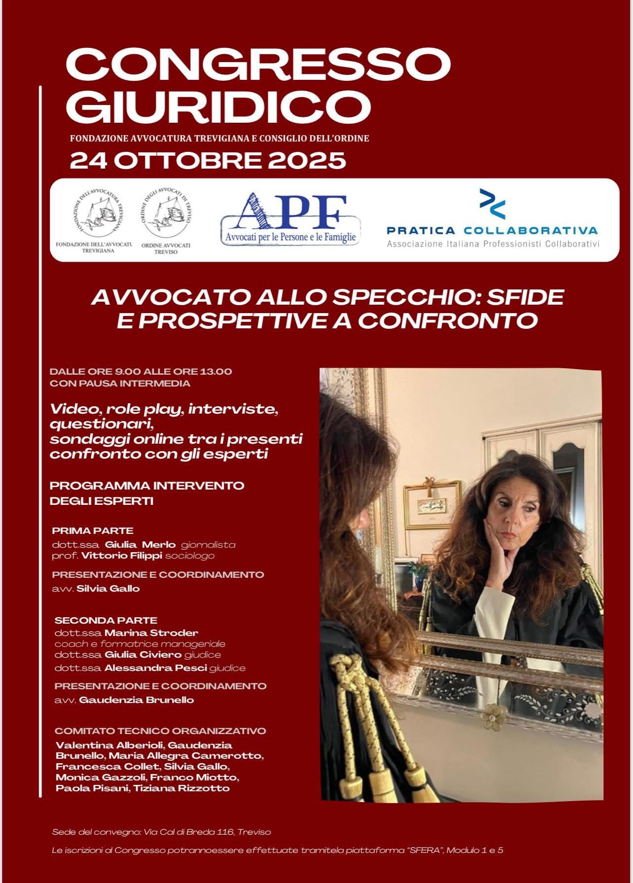 15 OTT 2025 Convegni APF Avvocato allo specchio: sfide e prospettive a confronto - Treviso, 24.10.2025